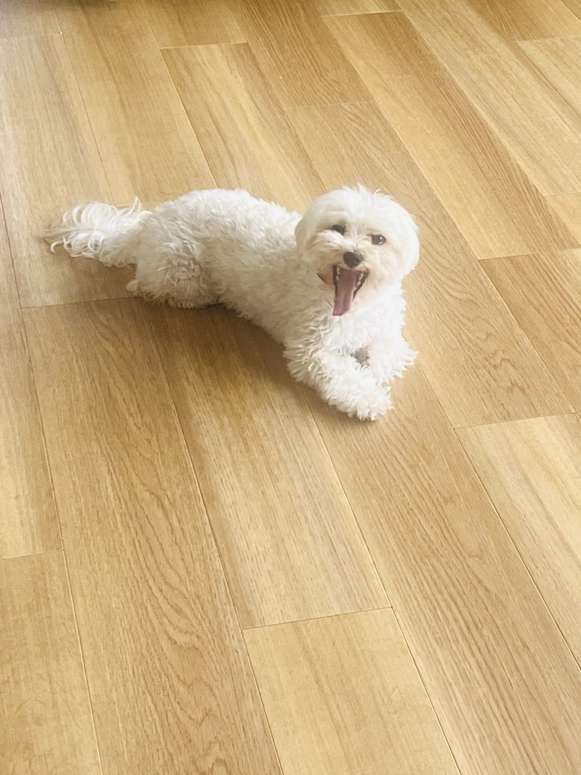 相棒の虹くん、散歩が大好きですが体力があまりない。室内で冬はぬくぬく、夏は涼しい環境で過ごしているため。